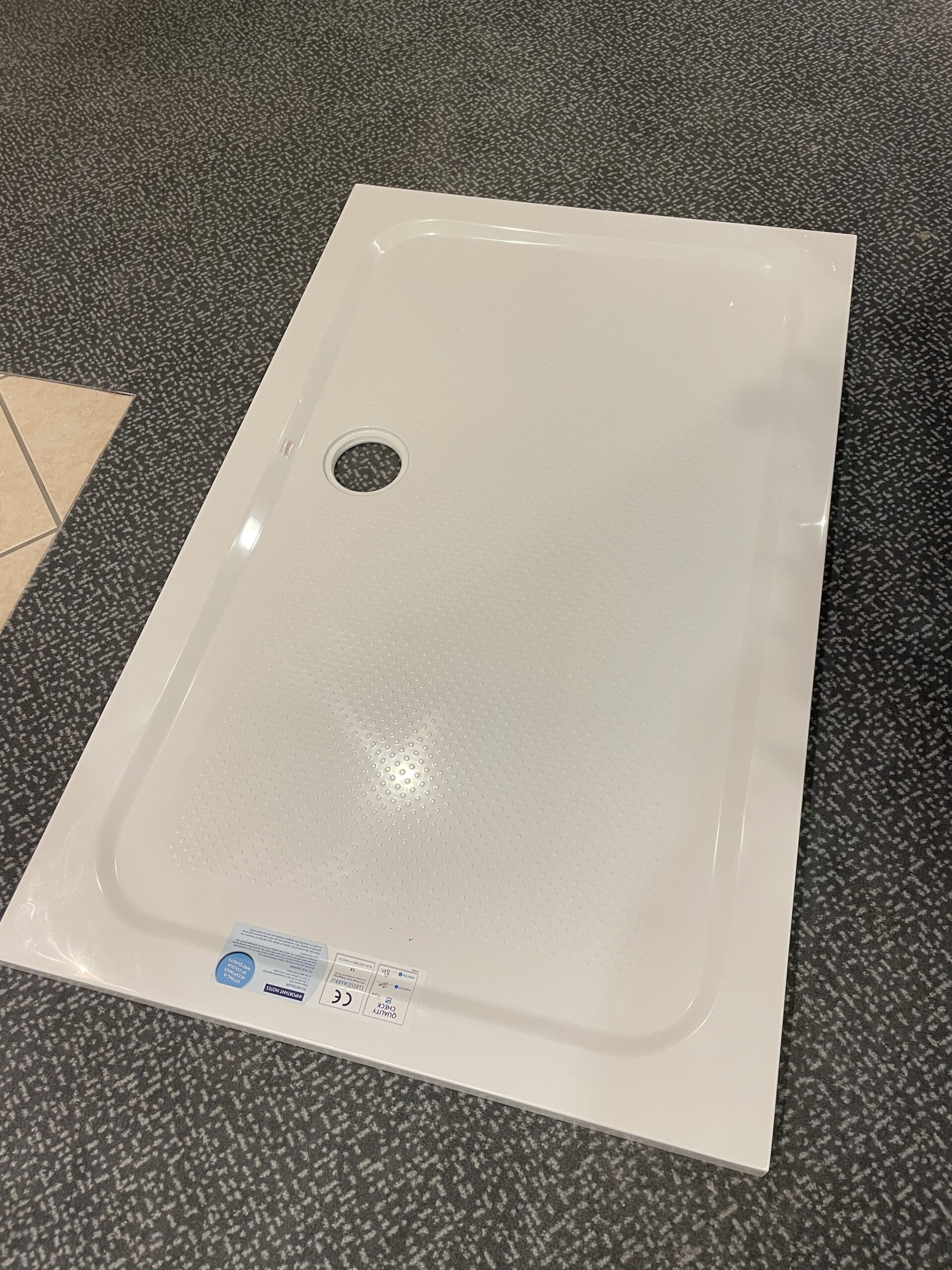Senstec 1200x760mm Anti-Slip Shower Tray c/w Chrome Waste – White